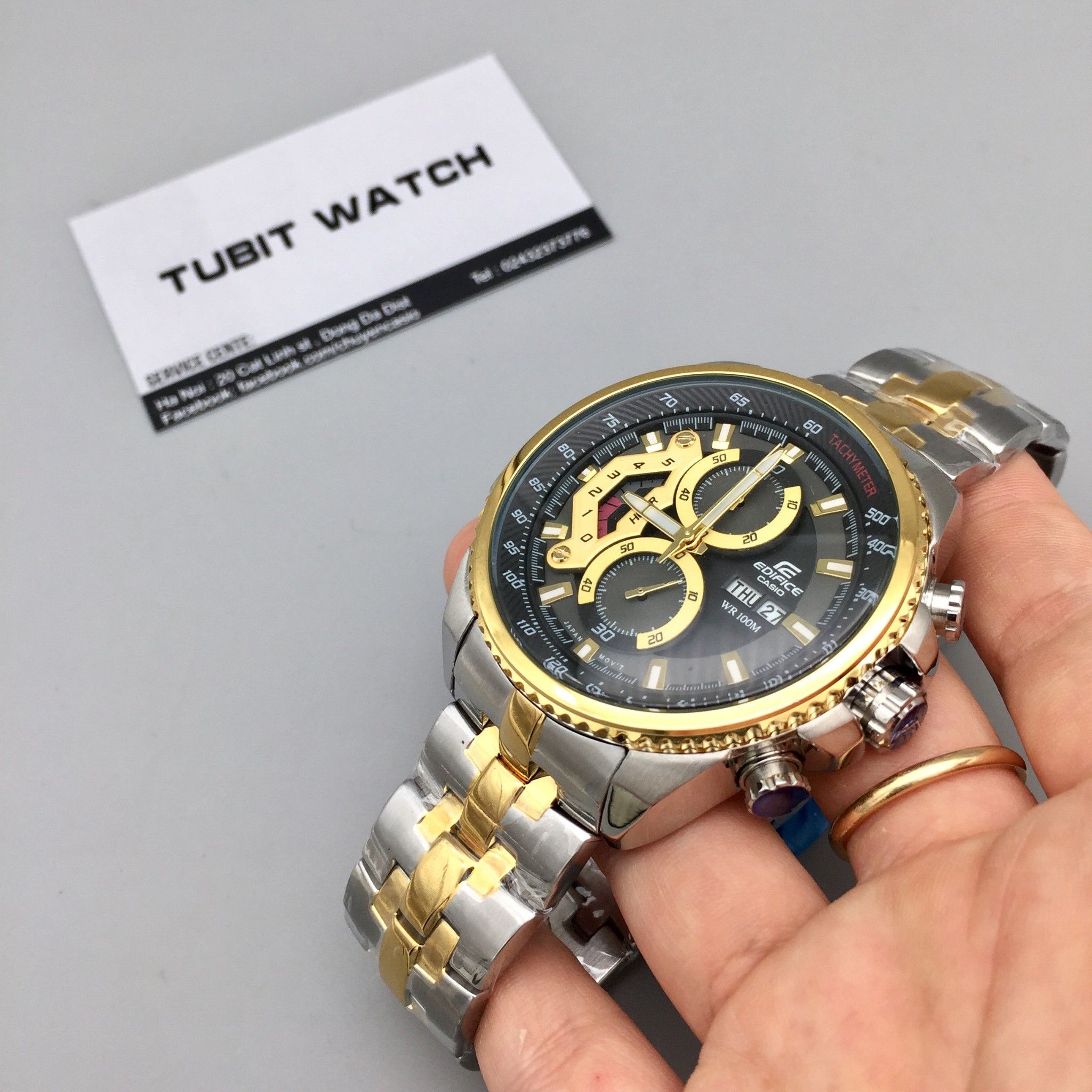 Phụ kiện đi kèm gồm hộp và thẻ bảo hành 10 năm cho máy , 10 năm cho chống nước và thay pin miễn phí trọn đời.
