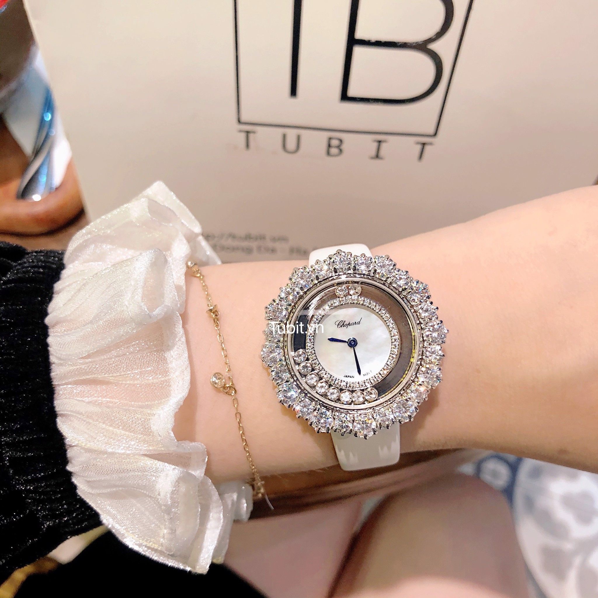 Kích thước mặt tính cả viền đá là 34mm , độ dày 8mm
