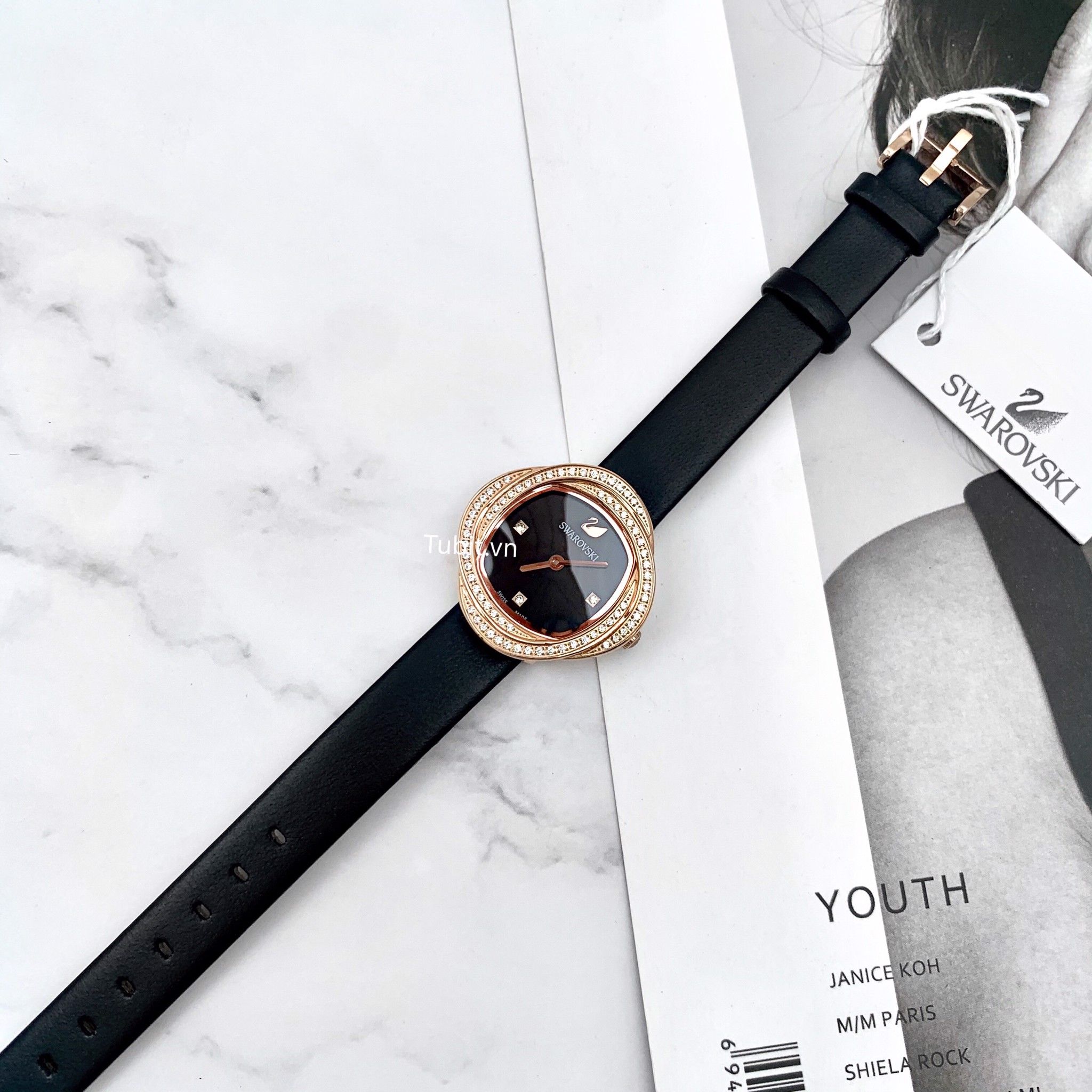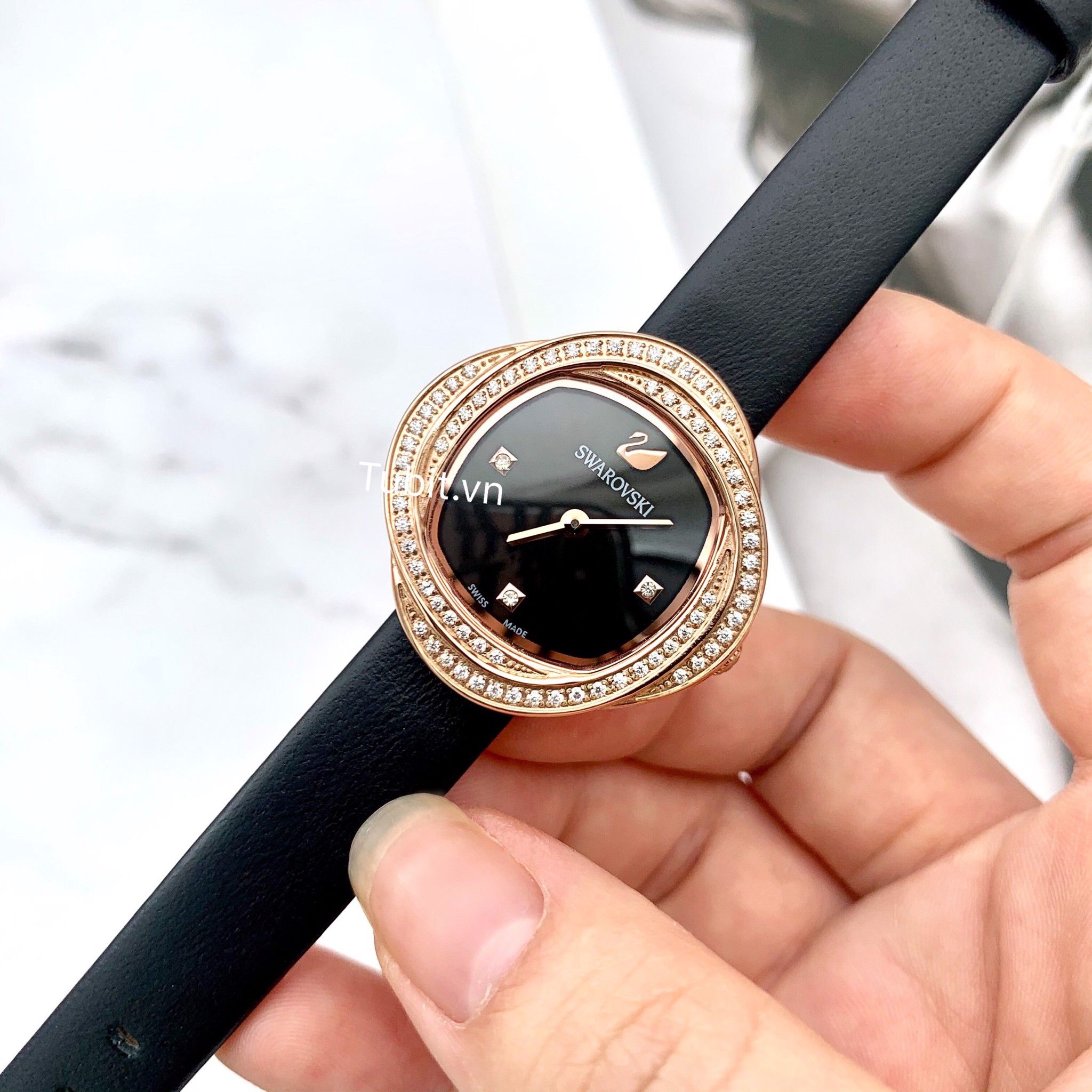 Đồng hồ nữ Swarovski dây da mặt vuông viền full đá hàng siêu cấp ms02