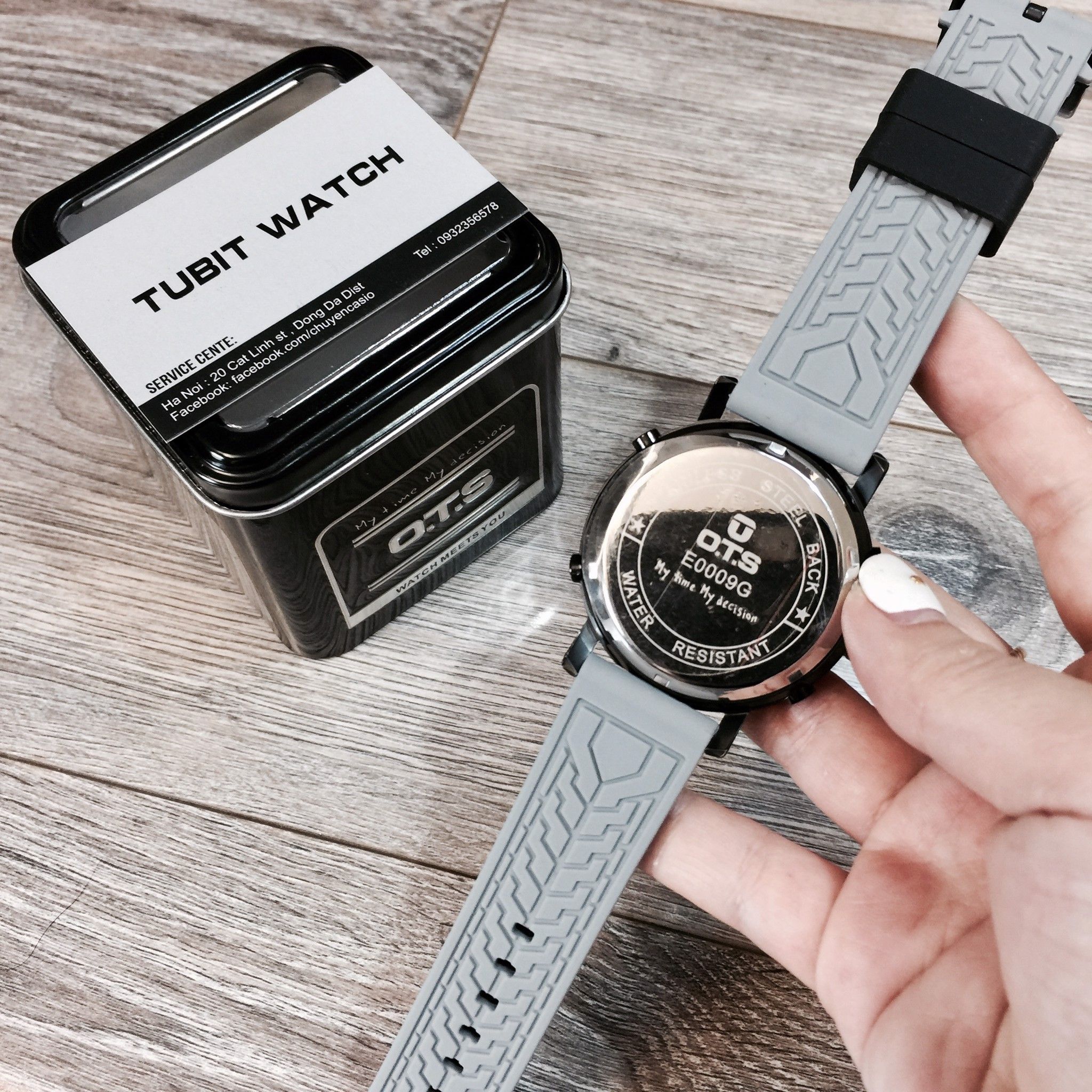 *Vỏ thép không rỉ , dây cao su , ai đeo cũng vừa , tay to tay nhỏ đeo ok hết mà không cần bấm thêm lỗ hoặc cắt dây.